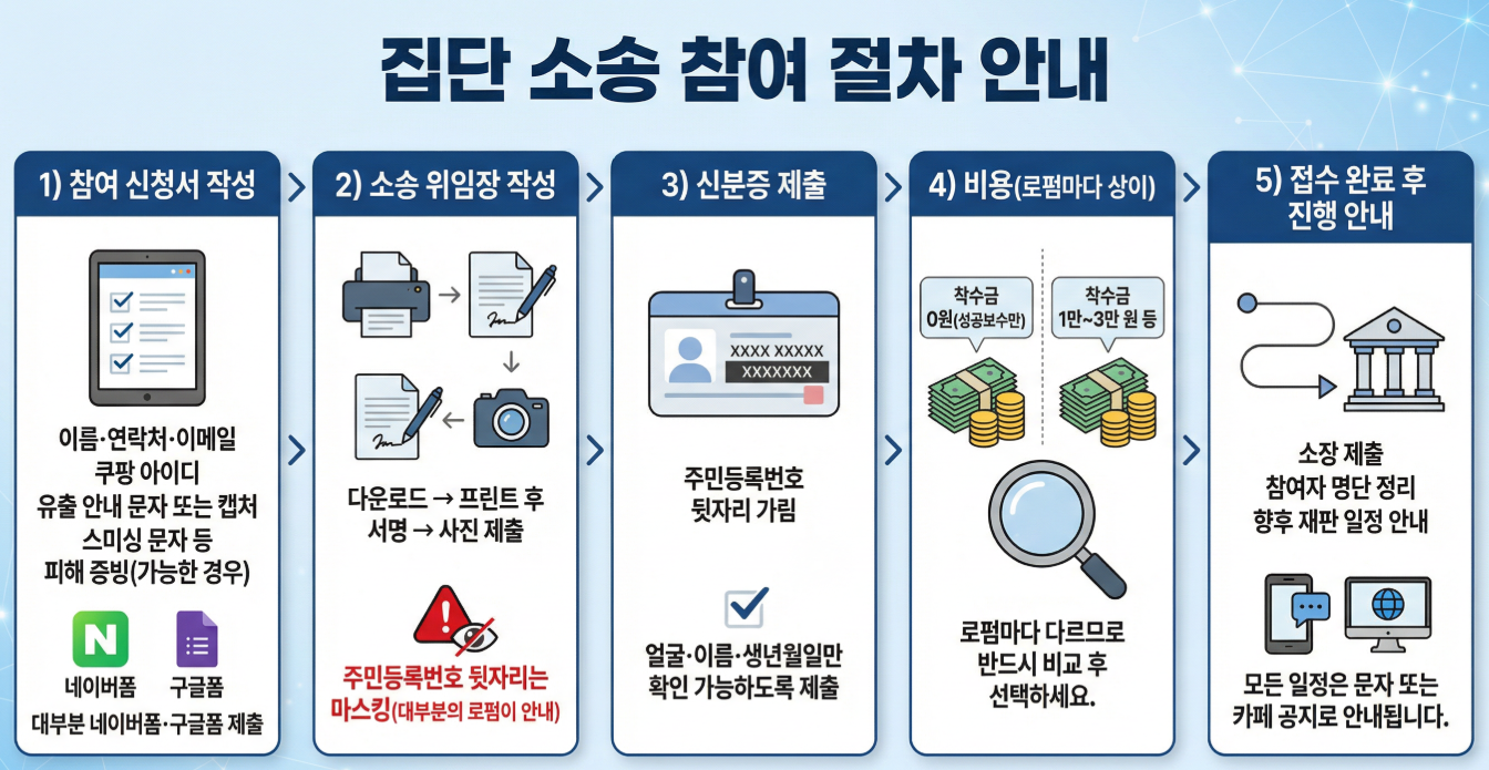오늘은 쿠팡 집단소송 참여 방법, 보상 가능 금액, 카페 선택 기준, 절차 전체 흐름을 정리해 드립니다.