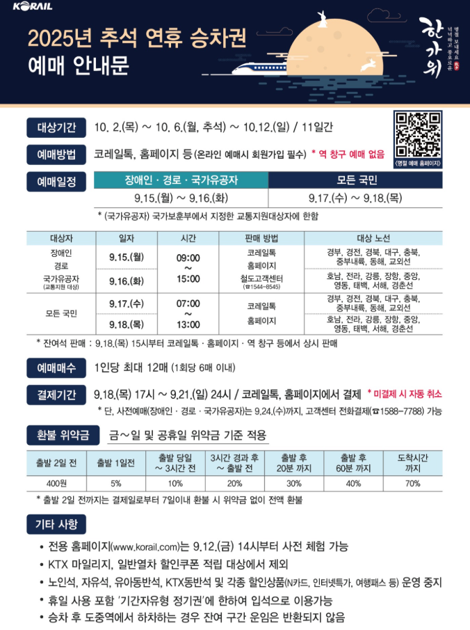2025년 추석 KTX 예매 가이드 (+할인·일정·예매 성공 꿀팁)