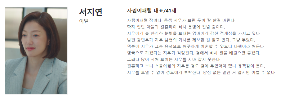 - 불륜 스캔들의 중심 인물로, 경도와 다시 얽히게 됨