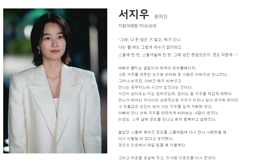 - 냉철한 기자이지만, 사랑 앞에서는 여전히 서툰 인물