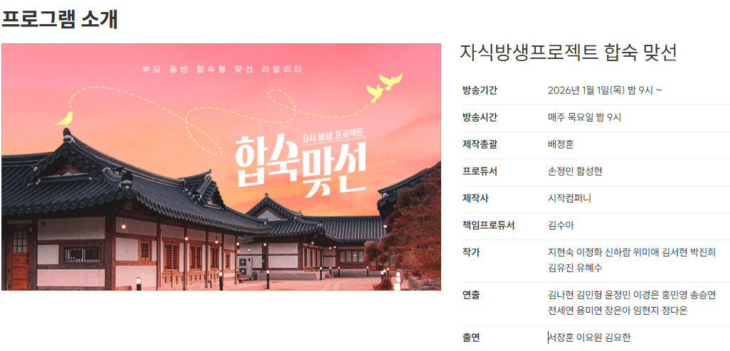 - 합숙맞선은 엄마 동반 결혼 검증형 연애 예능